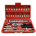 مجموعه آچار بکس 46پا رچه محکم و خوش دست می‌باشد یک جعبه بکس کامل که متشکل شده از چند عدد بکس در چند سایز و چند عدد بکس آلن ستاره ای چند عدد بکس پیچ گوشتی جغجغه با درایو 1/4